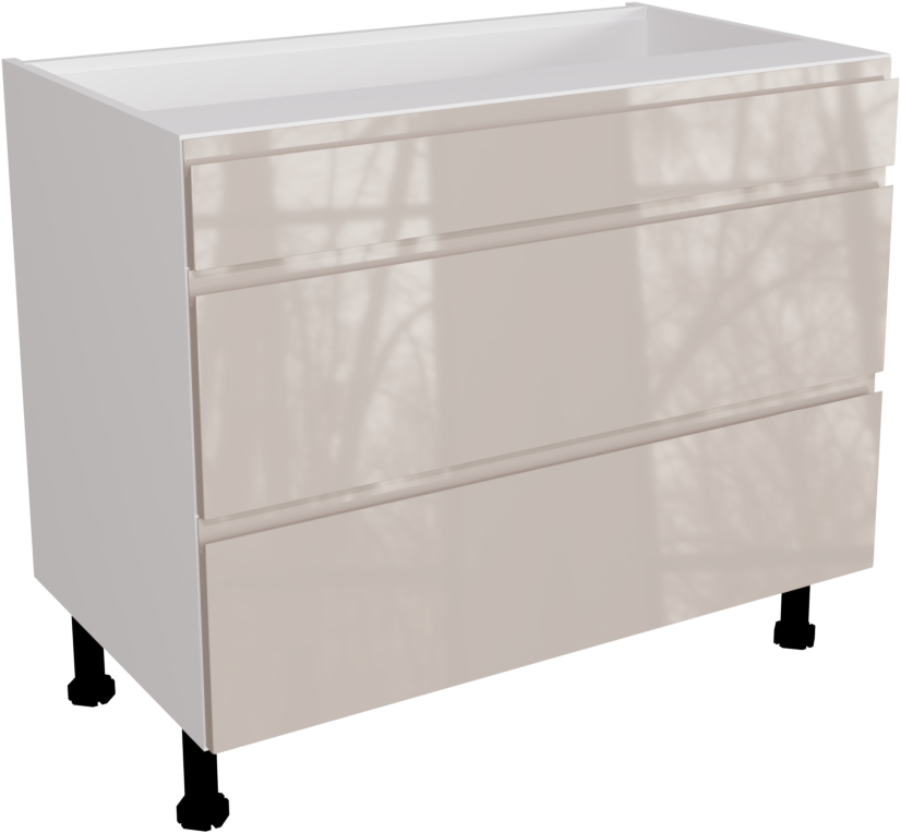 1000mm Handleless Gloss Cashmere Kitchen 3 Drawer Base Unit - JGCA-3DU1000