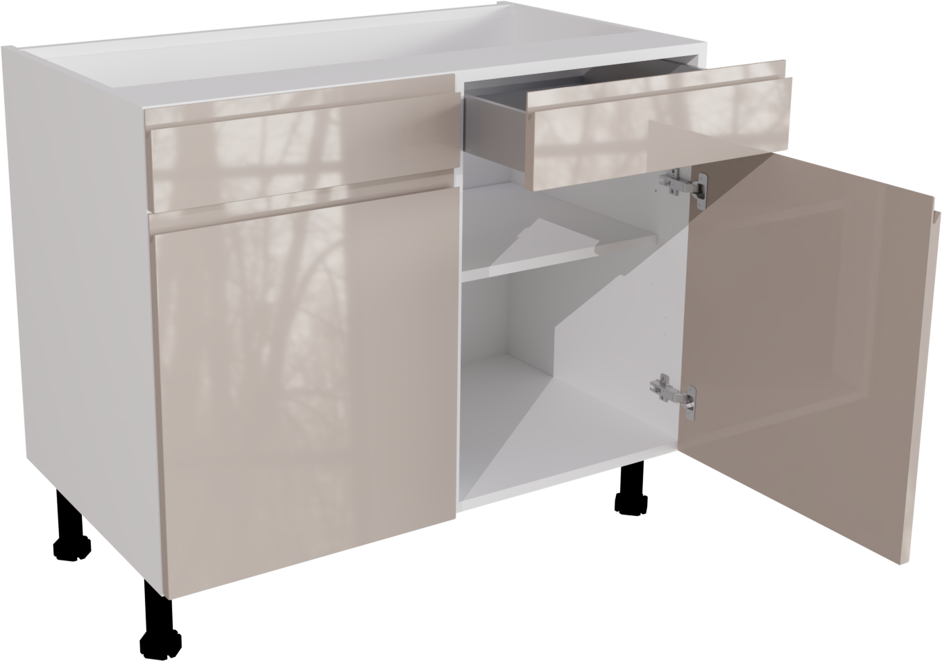Information: 1 x 720 Base DD 1000 ClicBox White 1 x Jayline Supergloss Cashmere Pronto Door 570x496 1 x Jayline Supergloss Cashmere Pronto Door 570x496 2 x Standard Hettich Hinge Pack (pair) Silver CPFITT0216 2 x Jayline Supergloss Cashmere Pronto Door 140x496 2 x 500W Atira Standard Drawer