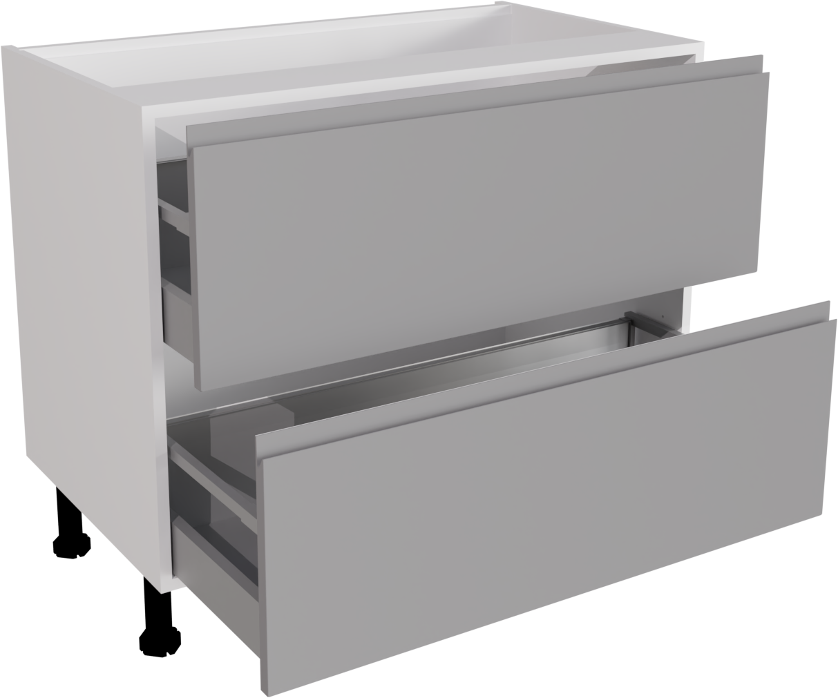 The 1000mm Handleless Matt Dust Grey Kitchen 2 Drawer Base Unit showcases a sleek, contemporary design, perfect for modern kitchen spaces. Its handleless style and two large drawers offer a minimalist aesthetic while providing generous storage solutions for kitchen essentials. This listing includes the following parts: