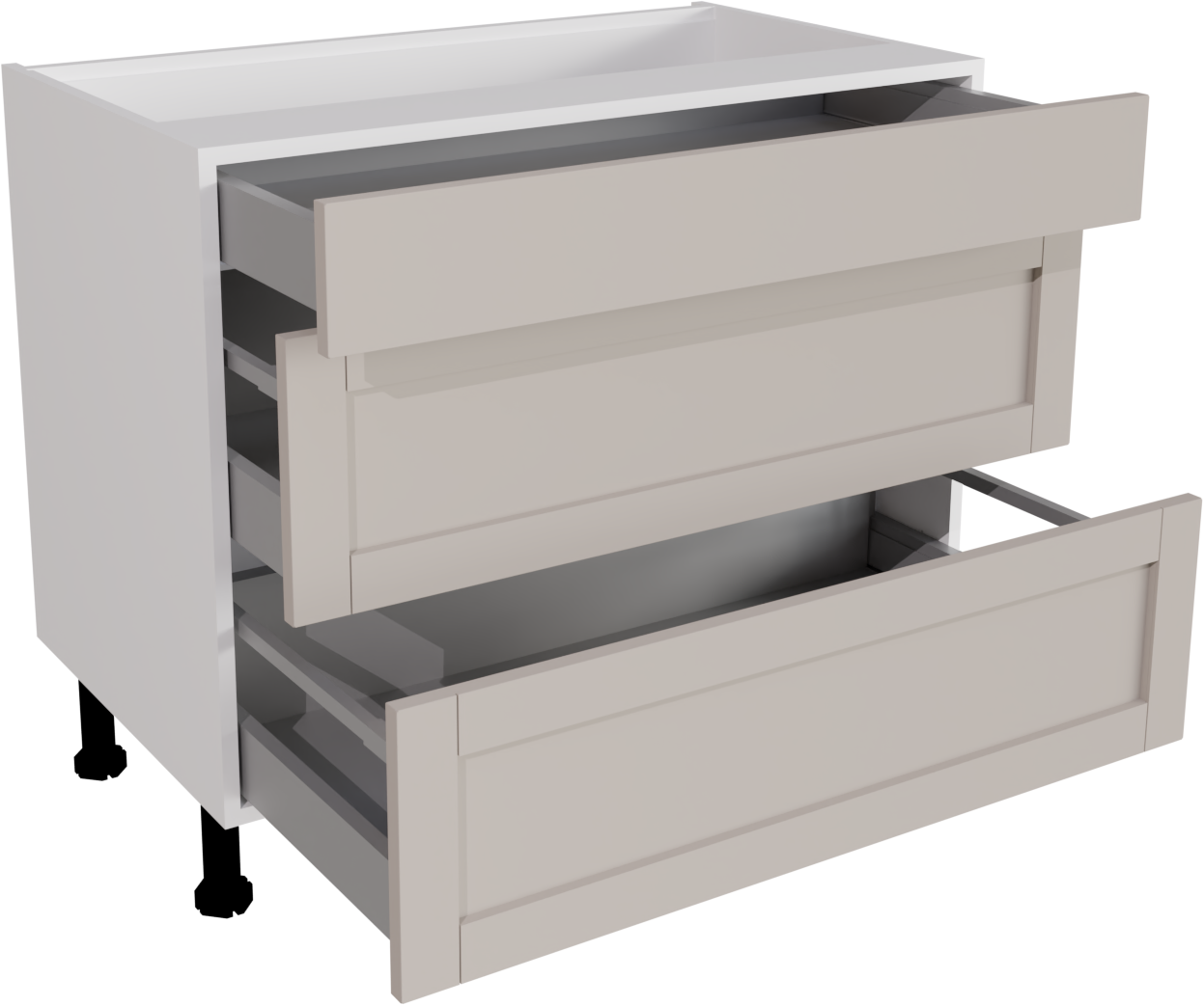 1000mm Waterford matt Cashmere Kitchen 3 Drawer Base Unit - WMCA-3DU1000