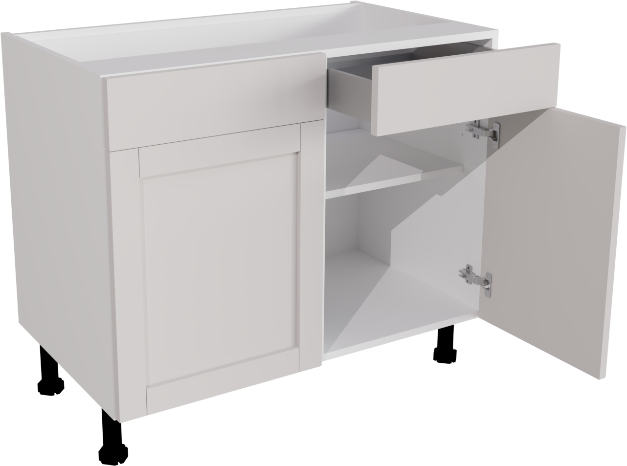 Information: 1 x 720 Base DD 1000 ClicBox White 1 x Waterford Supermatt Light Grey Pronto Door 570x496 1 x Waterford Supermatt Light Grey Pronto Door 570x496 2 x Standard Hettich Hinge Pack (pair) Silver CPFITT0216 2 x Waterford Supermatt Light Grey Pronto Door 140x496 2 x 500W Atira Standard Drawer