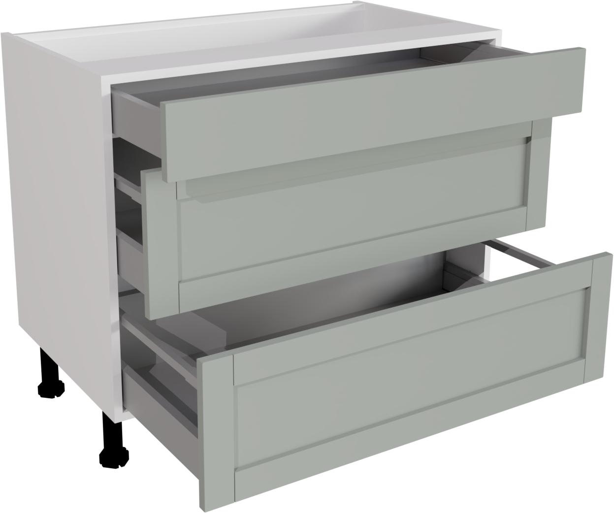 1000mm Waterford matt Sage Green Kitchen 3 Drawer Base Unit - WMSAG-3DU1000