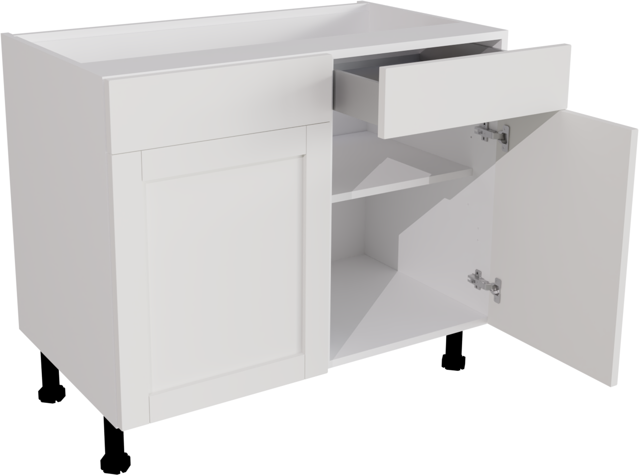 Information: 1 x 720 Base DD 1000 ClicBox White 1 x Waterford Supermatt White Pronto Door 570x496 1 x Waterford Supermatt White Pronto Door 570x496 2 x Standard Hettich Hinge Pack (pair) Silver CPFITT0216 2 x Waterford Supermatt White Pronto Door 140x496 2 x 500W Atira Standard Drawer