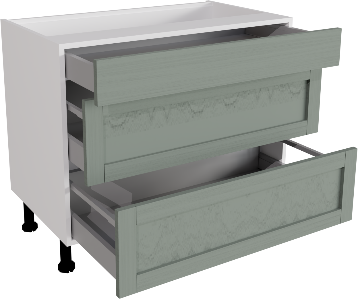 1000mm Waterford Woodgrain Sage Green Kitchen 3 Drawer Base Unit - WWSAG-3DU1000