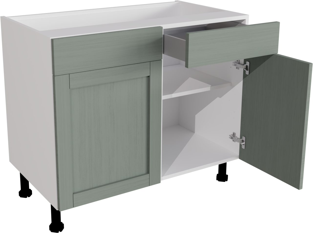 Information: 1 x 720 Base DD 1000 ClicBox White 1 x Waterford Woodgrain Sage Green Pronto Door 570x496 1 x Waterford Woodgrain Sage Green Pronto Door 570x496 2 x Standard Hettich Hinge Pack (pair) Silver CPFITT0216 2 x Waterford Woodgrain Sage Green Pronto Door 140x496 2 x 500W Atira Standard Drawer