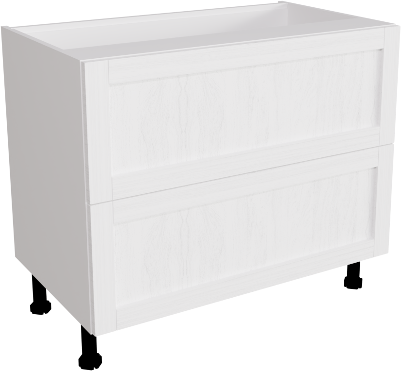 1000mm Waterford Woodgrain White Kitchen 2 Drawer Base Unit - WWWH-2DU1000