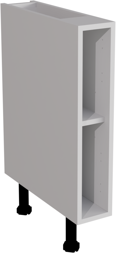 The base cabinet is grey, made from an 18mm MFC with an 8mm MDF back. This cabinet can be used as either a baseline cabinet or a drawerline base cabinet. Please see the recommended door sizes below for the specific recommended door sizes.