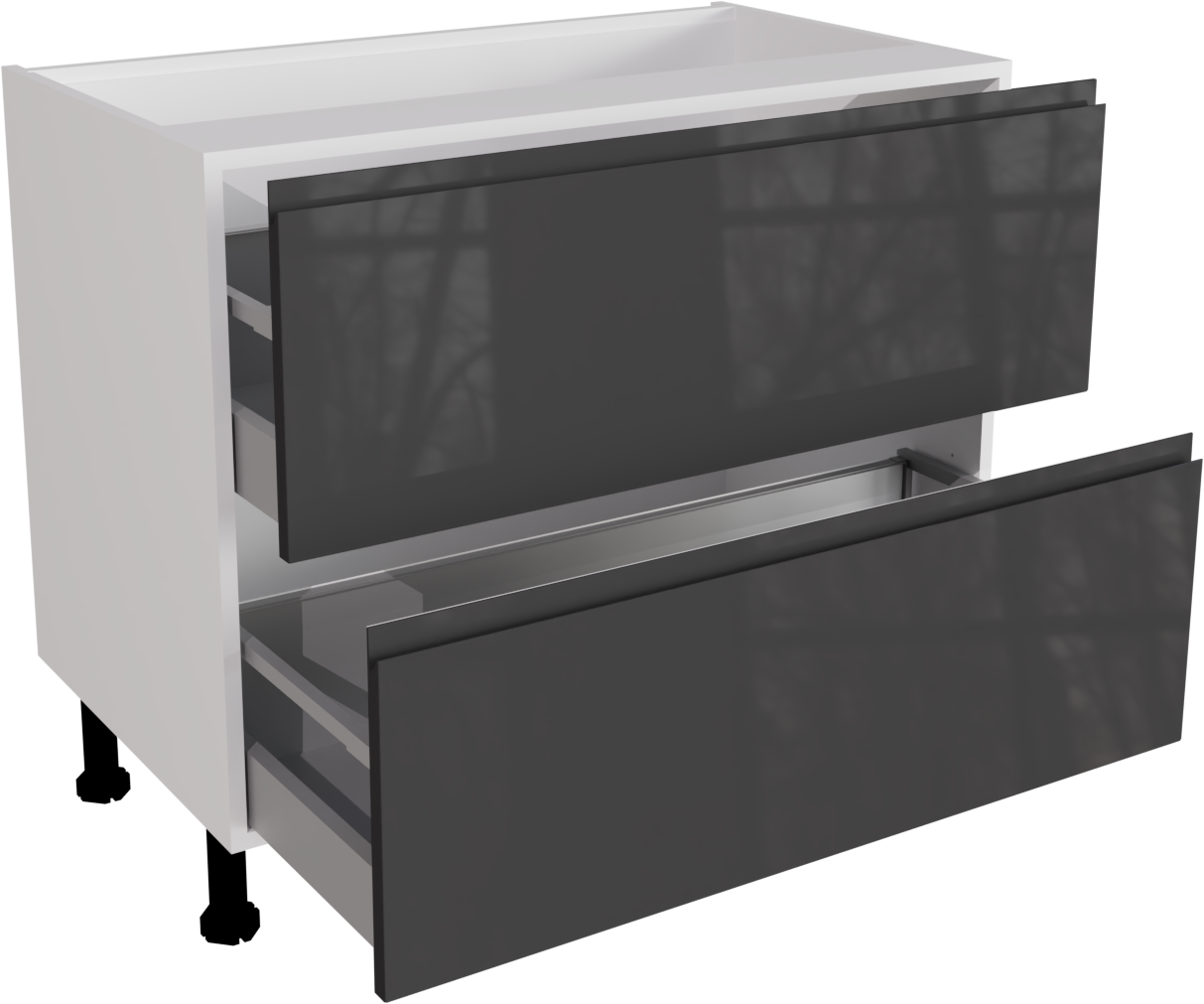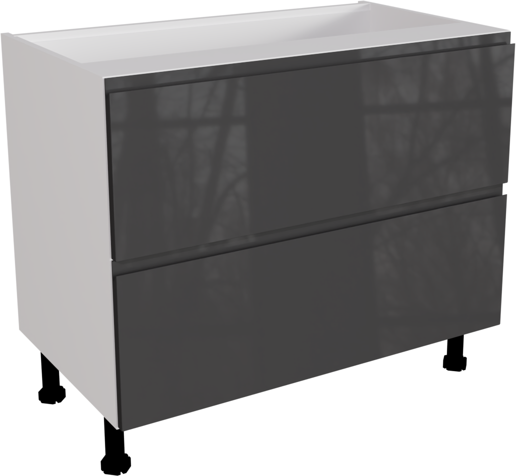 This is a 1000mm handleless, gloss graphite kitchen 2 drawer base unit available to buy from Flat Pack Kitchens. This unit includes the following parts: