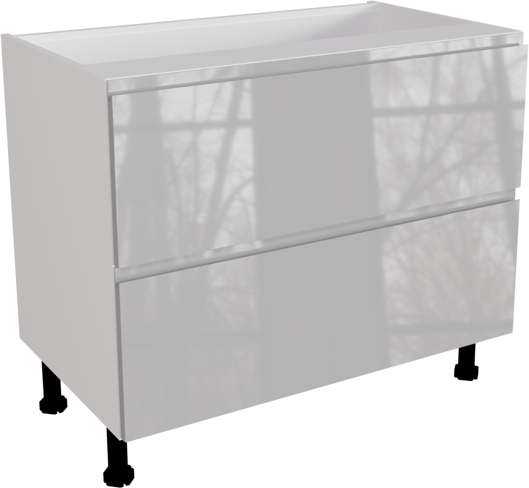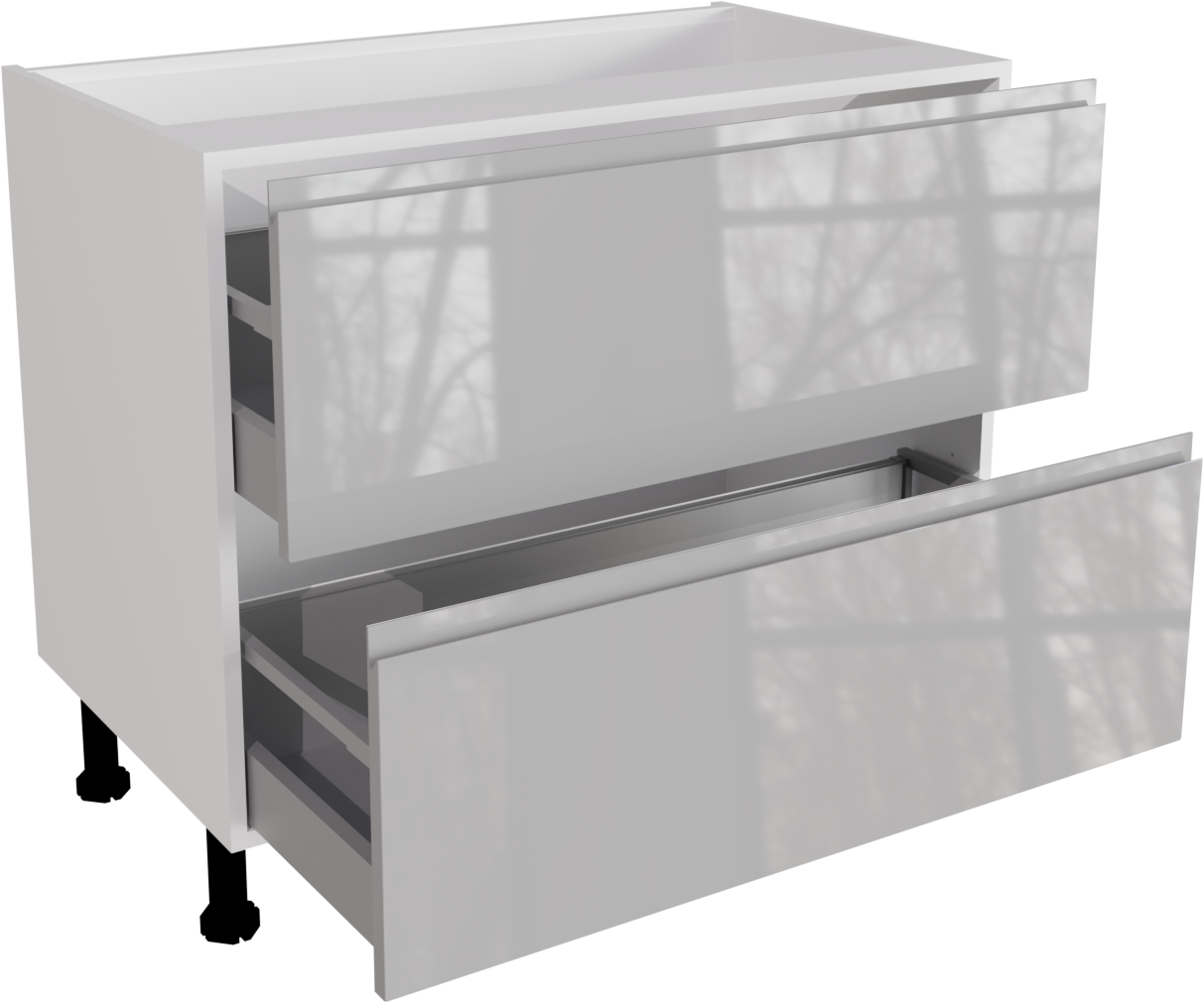 This is a 1000mm handleless, gloss light grey kitchen 2 drawer base unit available to buy from Flat Pack Kitchens. This unit includes the following parts: