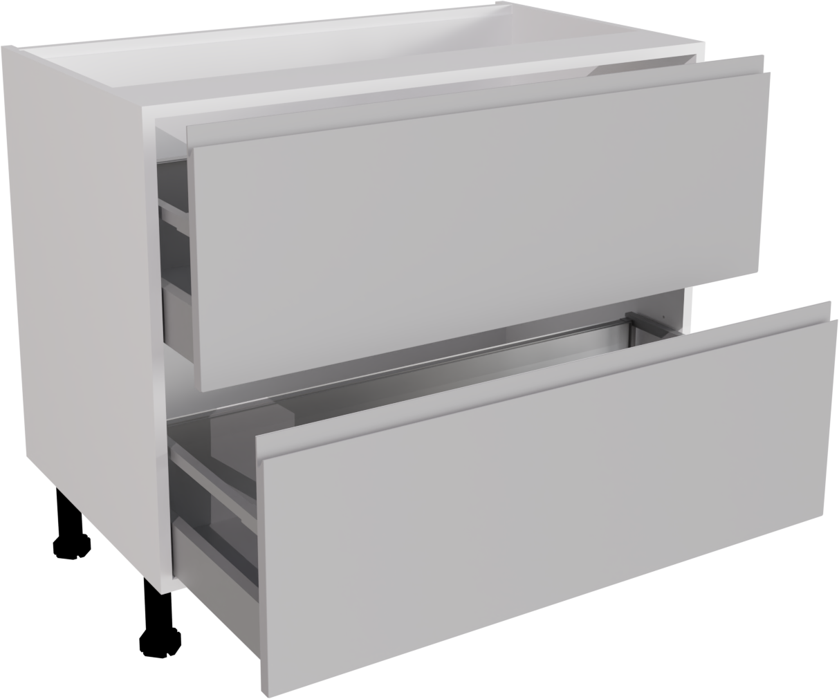 The 1000mm Handleless Matt Light Grey Kitchen 2 Drawer Base Unit combines ample storage with contemporary flair, featuring a sleek design and sophisticated light grey finish, perfect for modern kitchens where efficiency and style are paramount. This listing includes the following parts: