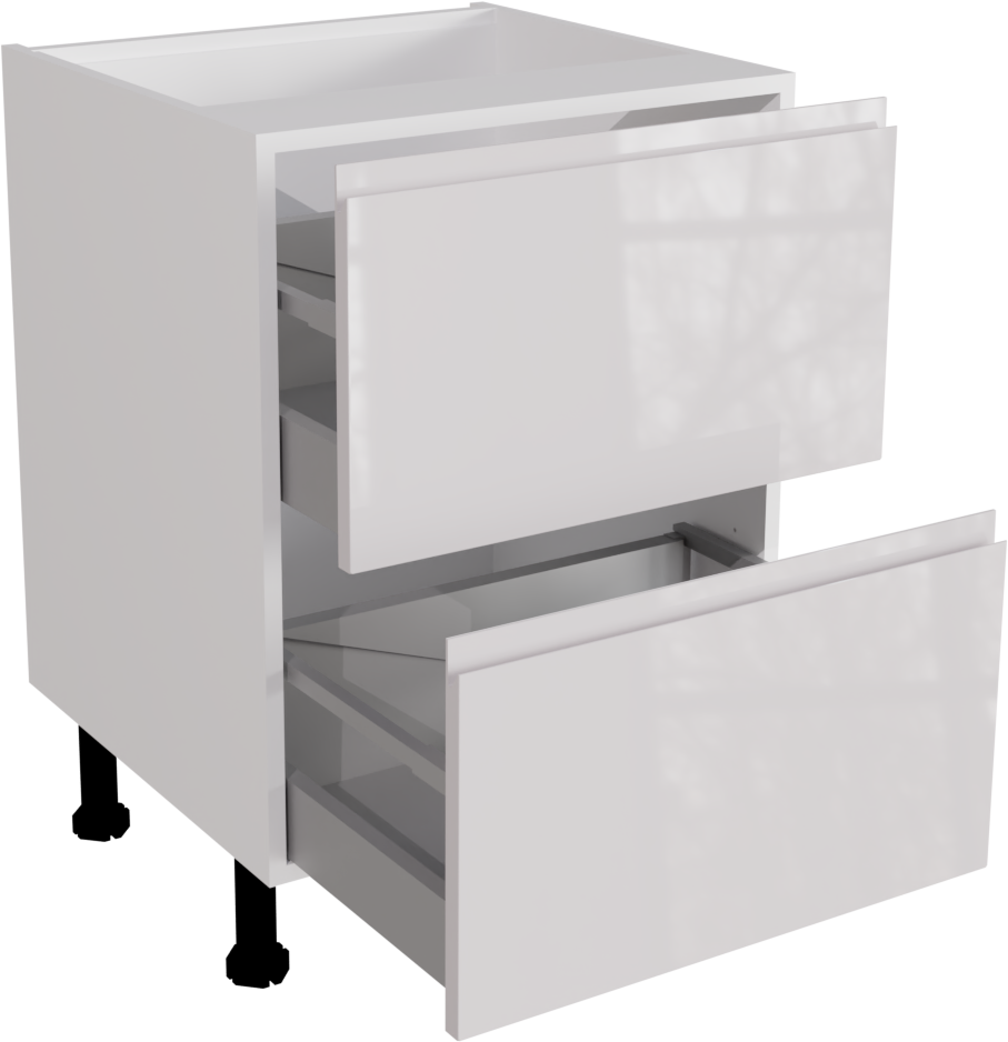 This is a handleless 600mm gloss white kitchen 2 drawer base unit. This unit includes the following parts: