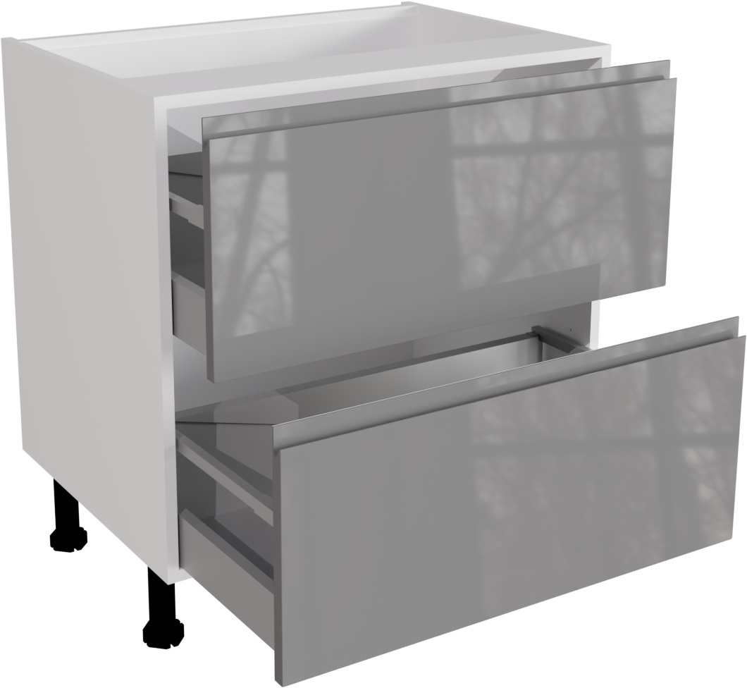 This is a handleless 800mm gloss dust grey kitchen 2 drawer base unit. The unit includes the following parts: