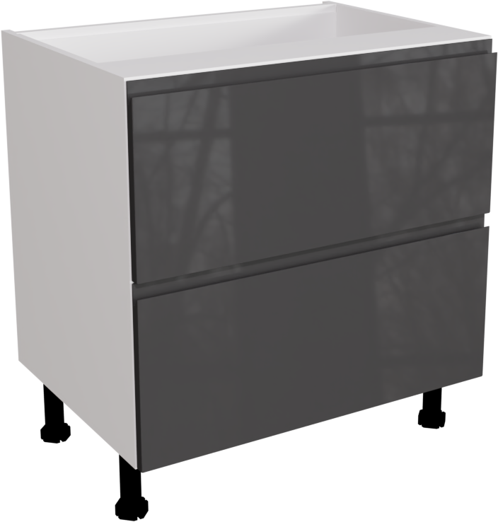 This is a handleless 800mm gloss graphite kitchen 2 drawer base unit. The unit includes the following parts: