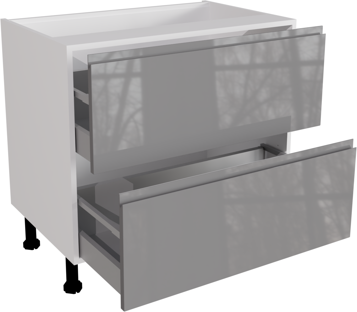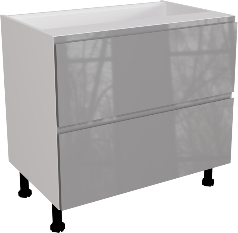 This is a 900mm handleless, gloss dust grey kitchen 2 drawer base unit available to buy from Flat Pack Kitchens. This unit includes the following parts: