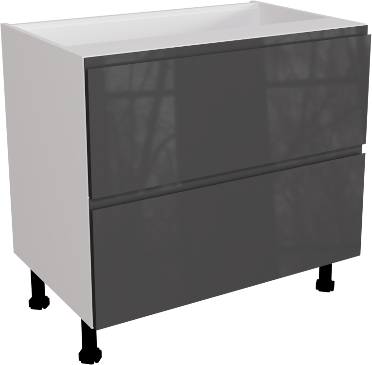 This is a 900mm handleless, gloss graphite kitchen 2 drawer base unit from Flat Pack Kitchens. This unit includes the following parts: