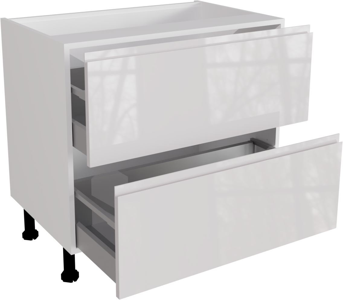 This is a 900mm handleless, gloss white kitchen 2 drawer base unit from Flat Pack Kitchens. This unit includes the following parts: