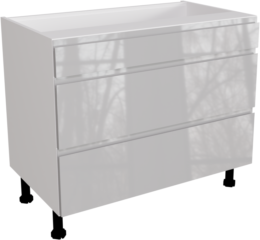 This is a 1000mm handleless gloss light grey 3 drawer kitchen base unit. This unit includes the following parts: