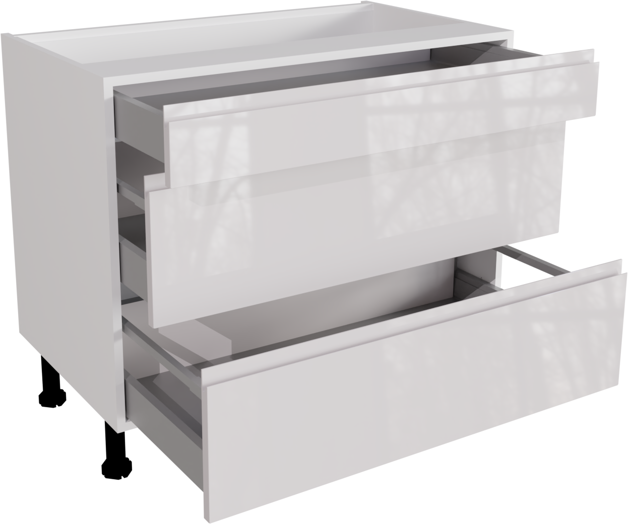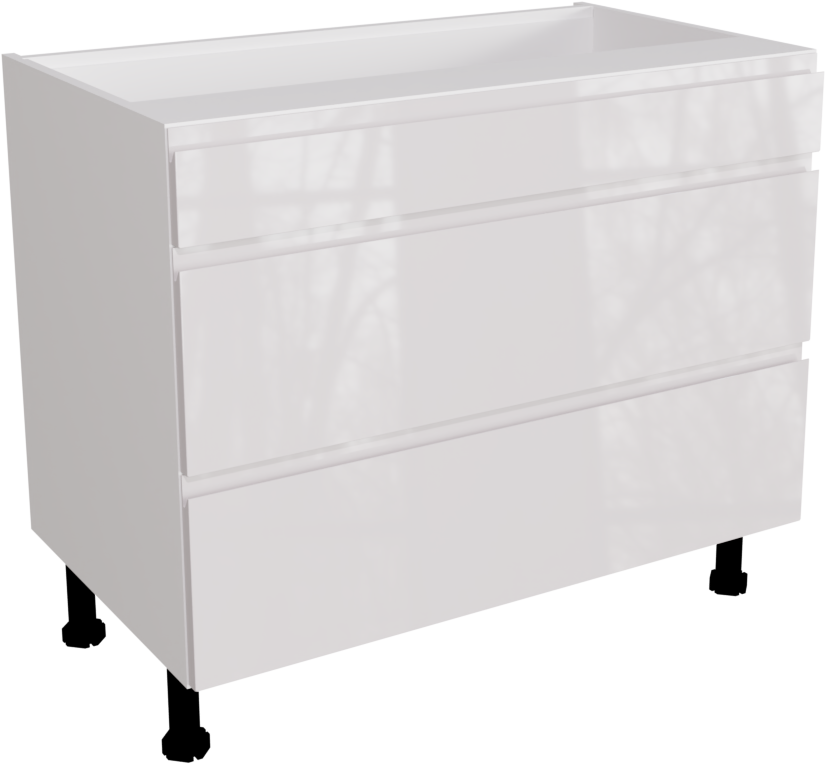 This is a 1000mm handleless gloss white 3 drawer kitchen base unit. This unit includes the following parts: