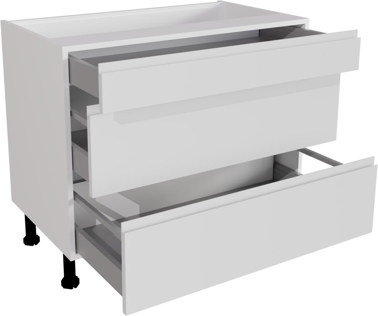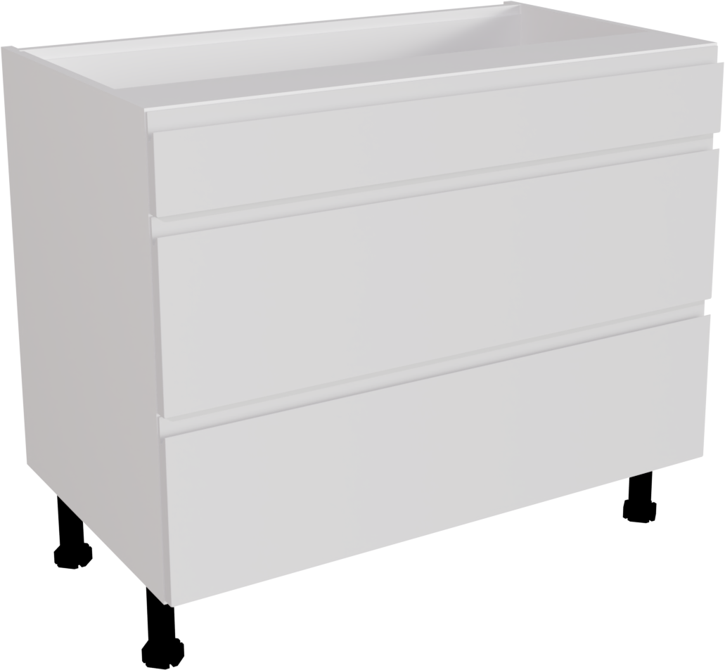 1000mm Handleless Matt White Kitchen 3 Drawer Base Unit - JMWH-3DU1000