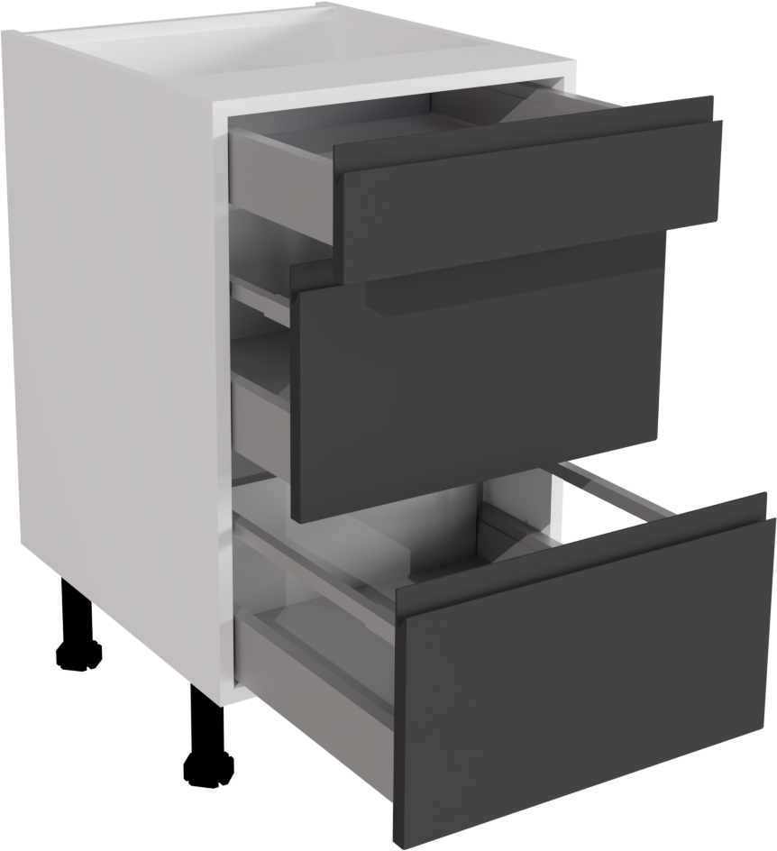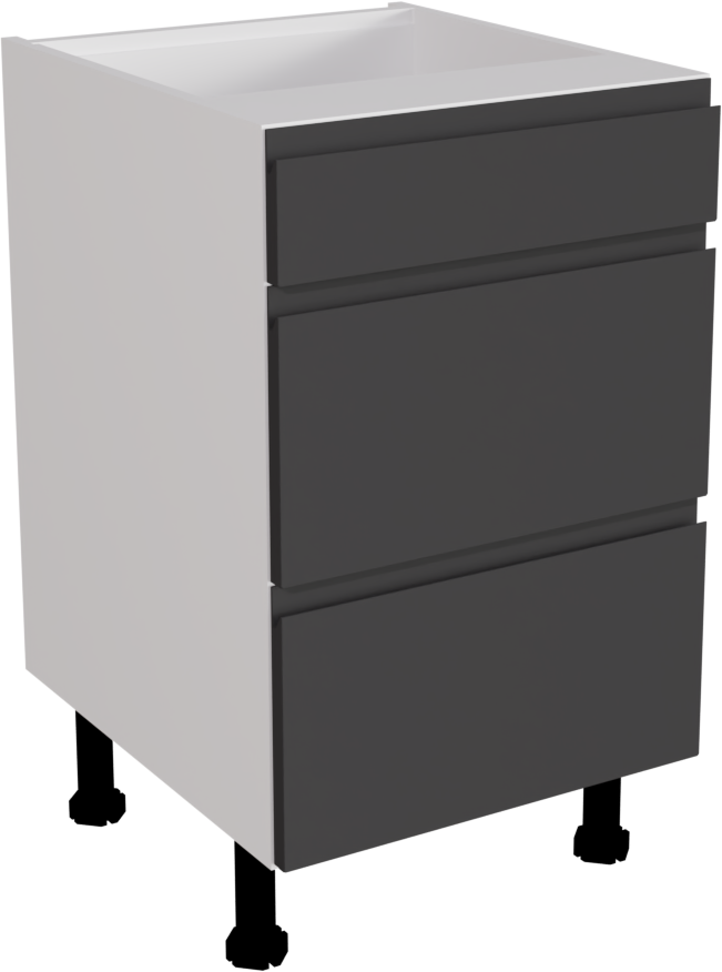 500mm Handleless Matt Graphite Kitchen 3 Drawer Base Unit - JMGR-3DU500