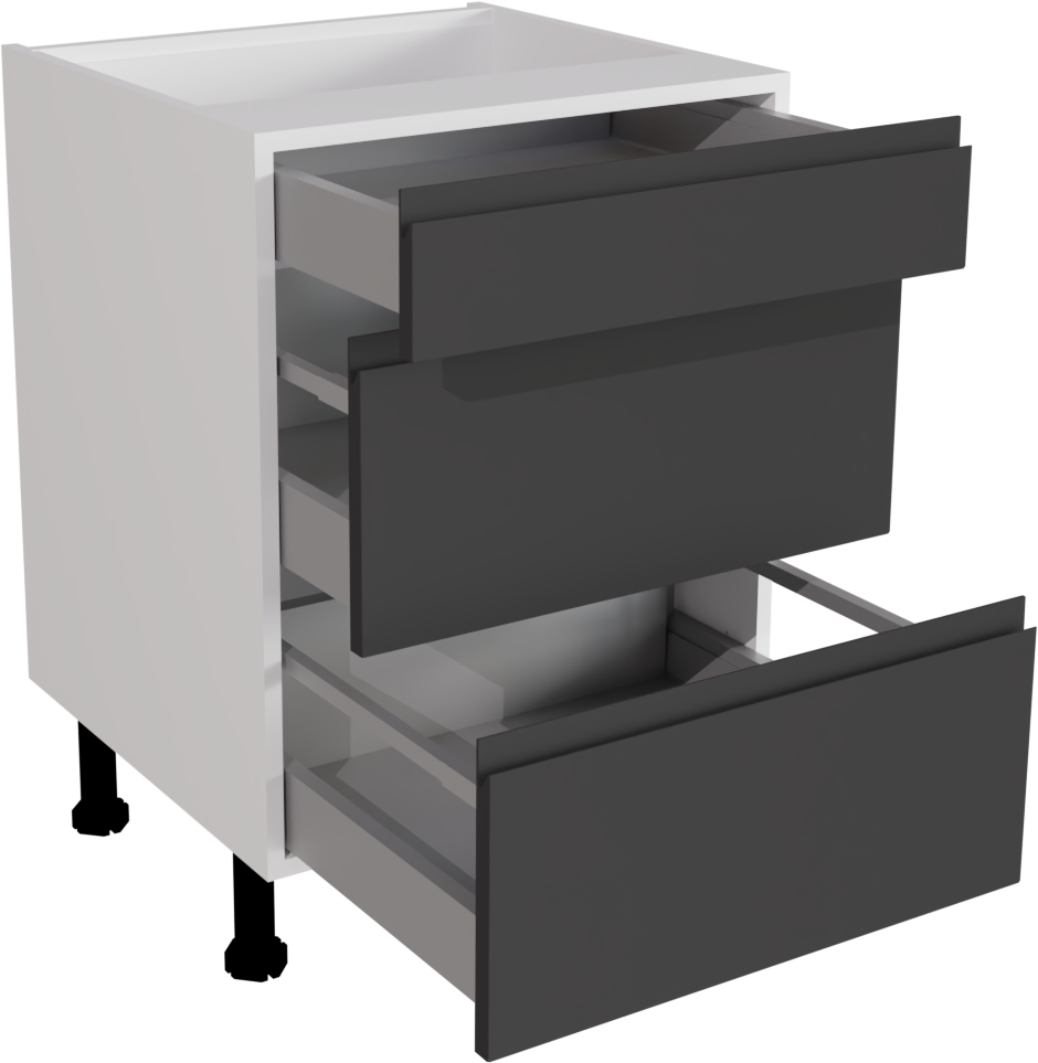 600mm Handleless Matt Graphite Kitchen 3 Drawer Base Unit - JMGR-3DU600