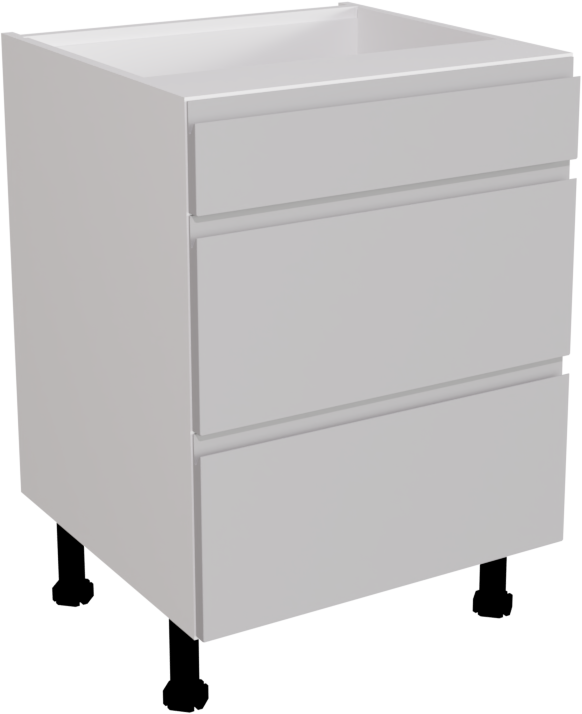 The 600mm Handleless Matt Light Grey Kitchen 3 Drawer Base Unit seamlessly integrates modern design with functionality, providing essential storage space in a sleek and sophisticated light grey finish, perfect for contemporary kitchen settings. This listing includes the following parts: