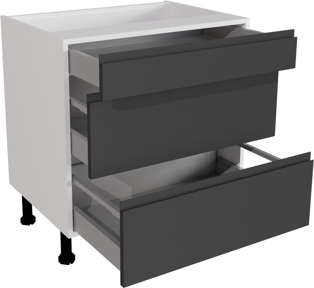 800mm Handleless Matt Graphite Kitchen 3 Drawer Base Unit - JMGR-3DU800