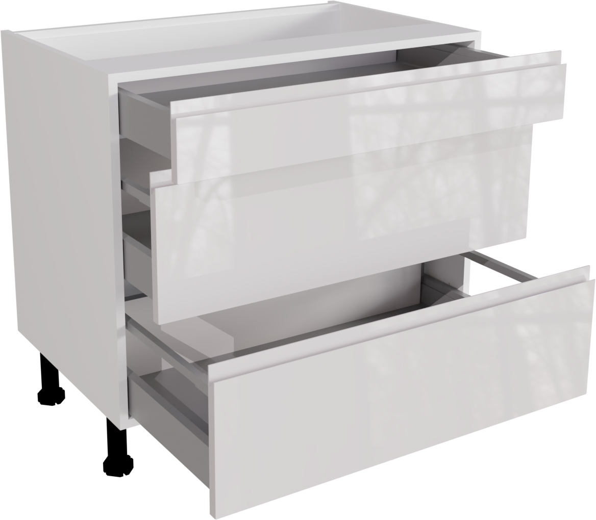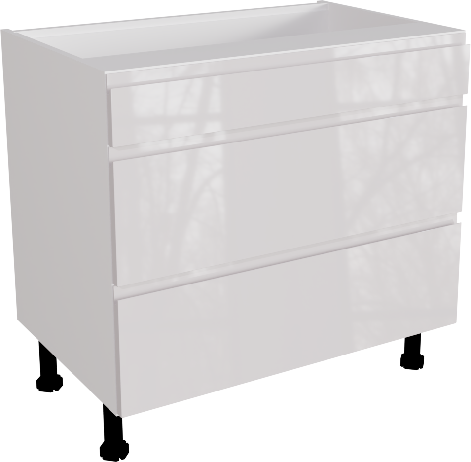 This is a 900mm handleless gloss white 3 drawer kitchen base unit. This unit includes the following parts: