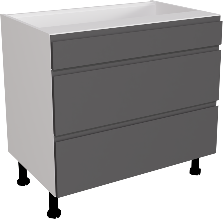 900mm Handleless Matt Graphite Kitchen 3 Drawer Base Unit - JMGR-3DU900
