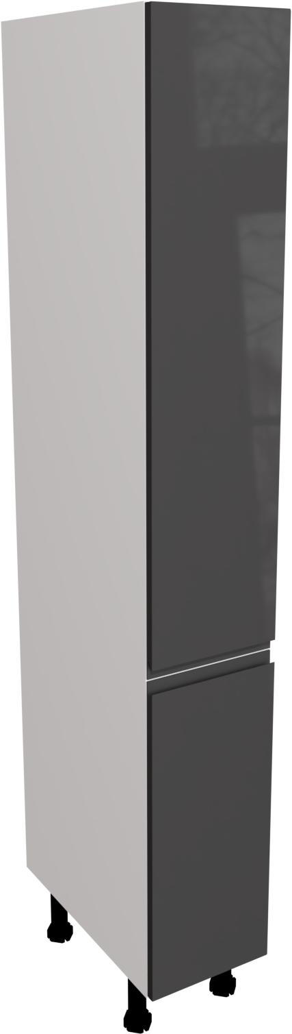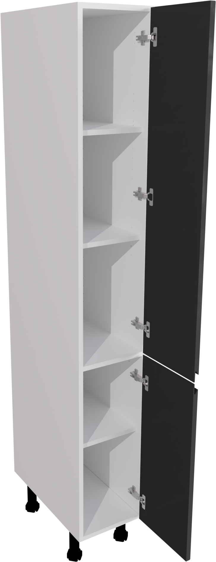 This is a 300mm handleless, high gloss graphite kitchen larder unit. It is a 300mm wide matt cabinet with jayline graphite gloss doors. This listing includes the following parts: