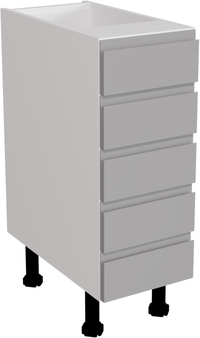The 300mm Handleless Matt Dust Grey Kitchen 5 Drawer Base Unit offers compact yet versatile storage solutions with a contemporary aesthetic. Its handleless design and elegant dust grey finish make it a stylish and practical addition to modern kitchen spaces, optimising organisation without sacrificing on style.