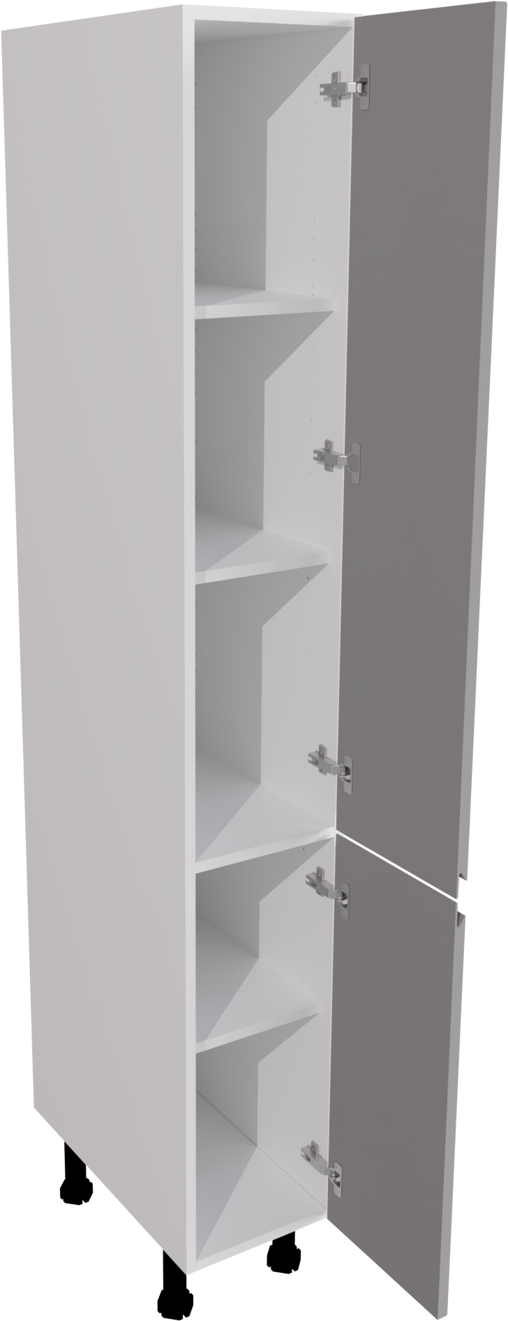 The 300mm Handleless Matt Dust Grey Kitchen Larder Unit provides compact yet efficient storage for modern kitchen layouts. Its handleless design enhances the minimalist aesthetic while offering convenient organisation for pantry items or kitchen essentials, making it an ideal addition to optimise space in smaller kitchens.
