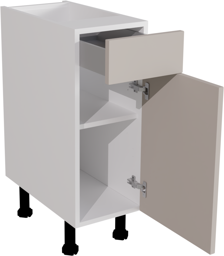 Information: 1 x 720 Base DD 300 ClicBox White 1 x Waterford Supermatt Cashmere Pronto Door 570x296 1 x Waterford Supermatt Cashmere Pronto Door 140x296 1 x 300W Atira Standard Drawer