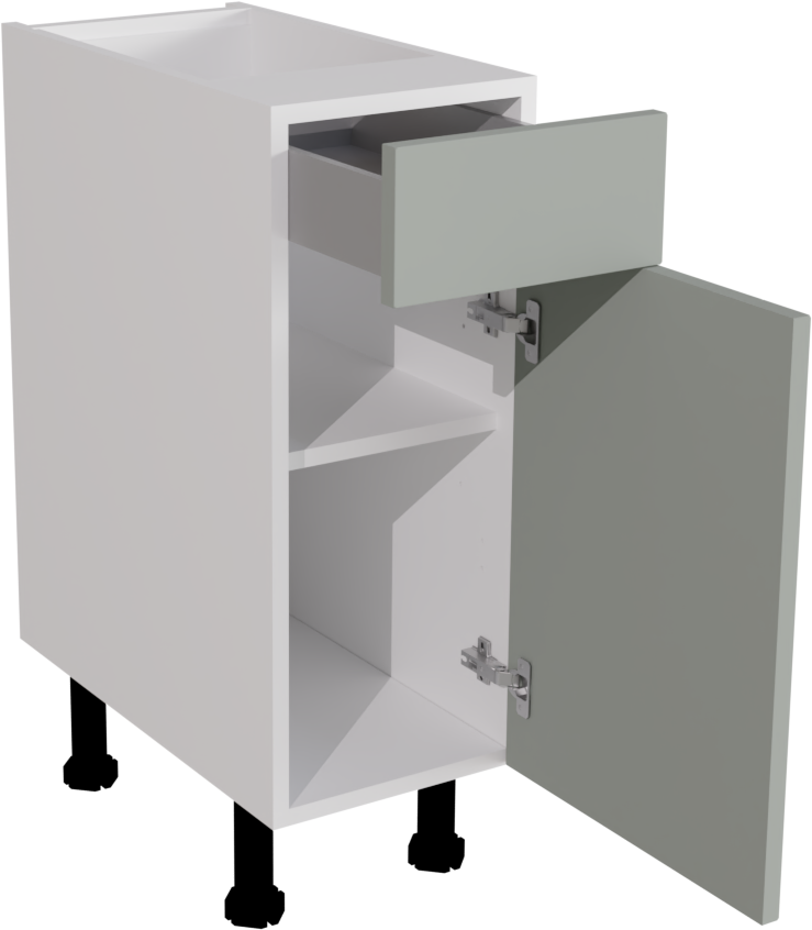 Information: 1 x 720 Base DD 300 ClicBox White 1 x Waterford Supermatt Sage Green Pronto Door 570x296 1 x Waterford Supermatt Sage Green Pronto Door 140x296 1 x 300W Atira Standard Drawer