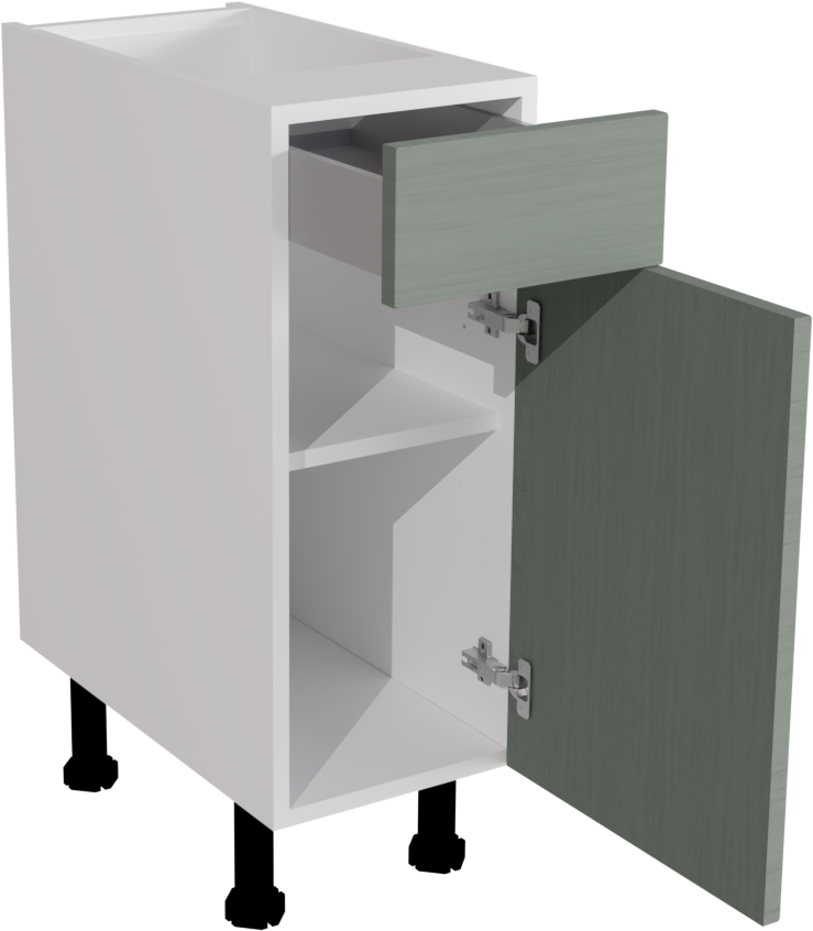 Information: 1 x 720 Base DD 300 ClicBox White 1 x Waterford Woodgrain Sage Green Pronto Door 570x296 1 x Waterford Woodgrain Sage Green Pronto Door 140x296 1 x 300W Atira Standard Drawer