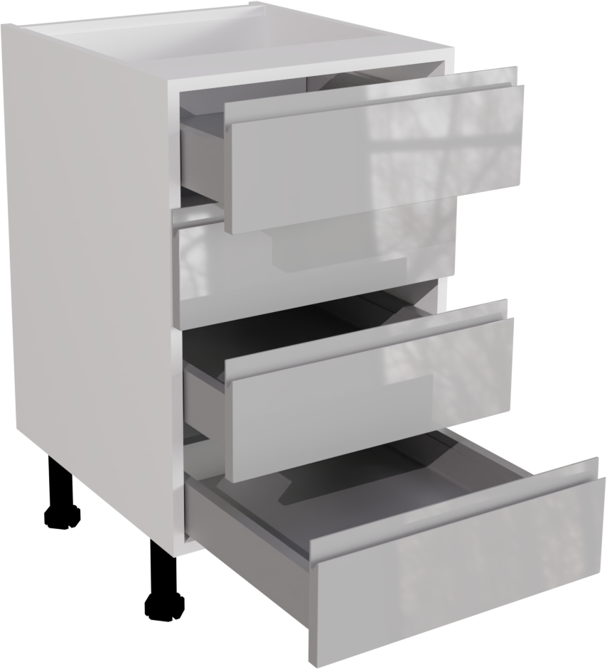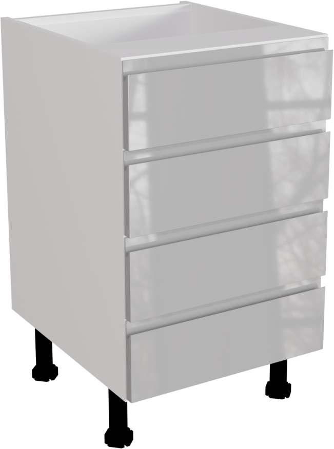 This is a 500mm handleless gloss light grey kitchen 4 drawer base unit. This unit includes includes the following parts: