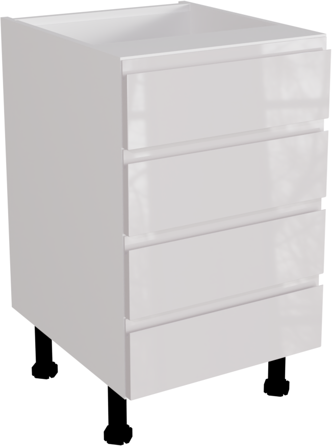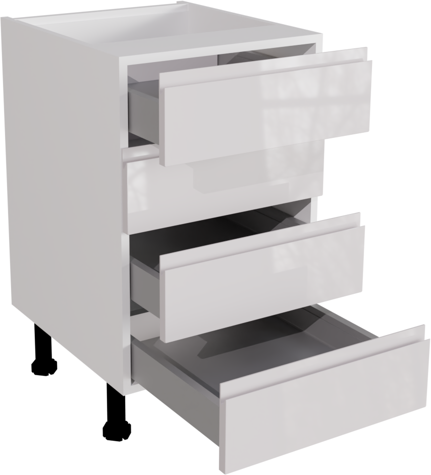 This is a 500mm handleless gloss white kitchen 4 drawer base unit. This unit includes includes the following parts: