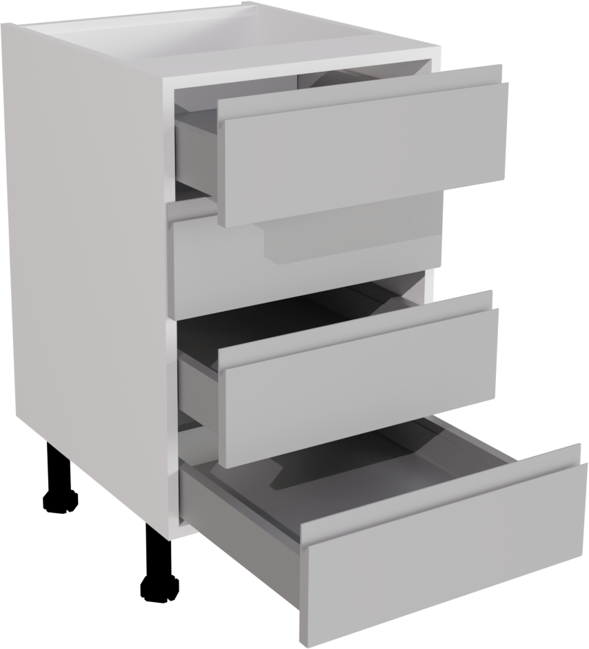 The 500mm Handleless Matt Light Grey Kitchen 4 Drawer Base Unit provides versatile storage solutions and modern design for contemporary kitchens. Crafted with precision and featuring a sleek handleless profile, it optimises organisation while adding a touch of sophistication to culinary spaces. This listing includes includes the following parts: