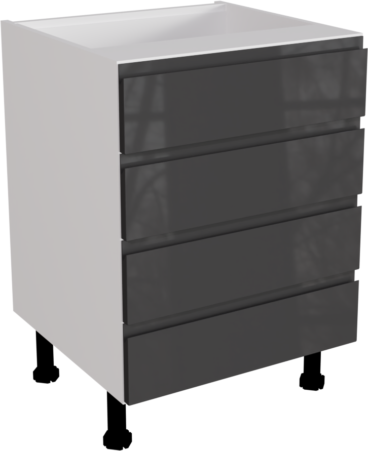 600mm Handleless Gloss Graphite Kitchen 4 Drawer Base Unit - JGGR-4DU600