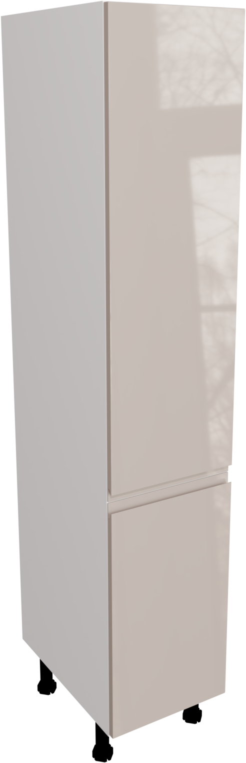 This is a 400mm handleless, gloss cashmere kitchen larder unit. It is a 400mm wide larder cabinet with two high gloss jayline cashmere doors. This unit includes the following parts: