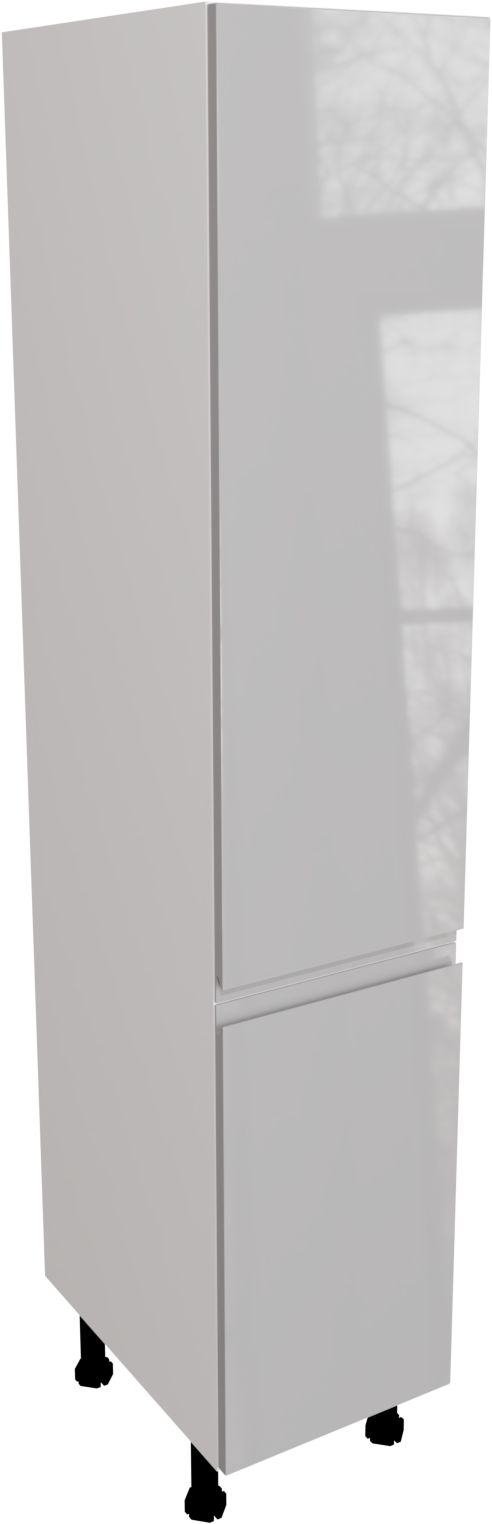 This is a 400mm handleless, gloss light grey kitchen larder unit. It is a 400mm wide larder cabinet with two jayline high gloss light grey doors. This unit includes the following parts: