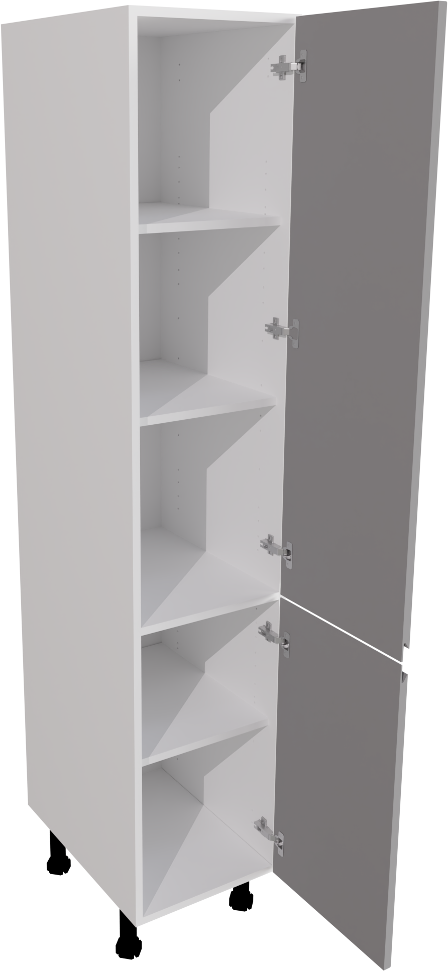 The 400mm Handleless Matt Dust Grey Kitchen Larder Unit offers streamlined storage with a contemporary touch, perfect for modern kitchen designs. Its handleless design enhances the sleek aesthetic while providing practical storage solutions for pantry items or kitchen essentials, making it an ideal choice to maximise functionality in compact spaces.