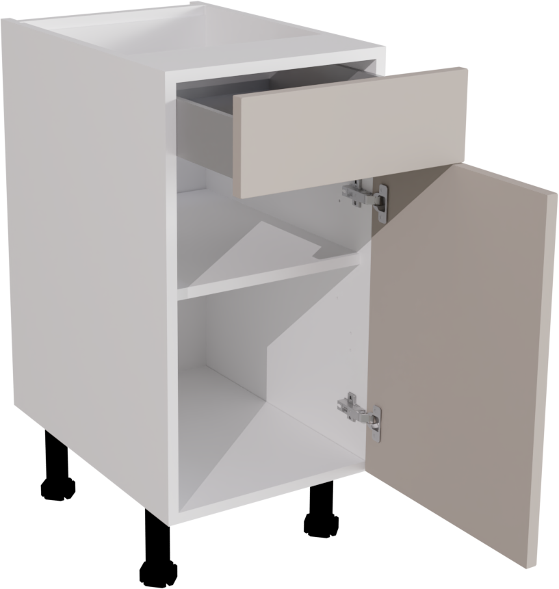 Information: 1 x 720 Base DD 400 ClicBox White 1 x Waterford Supermatt Cashmere Pronto Door 570x396 1 x Waterford Supermatt Cashmere Pronto Door 140x396 1 x 400W Atira Standard Drawer