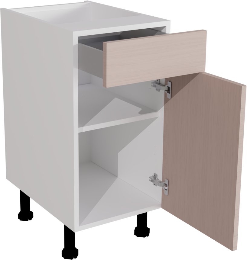 Information: 1 x 720 Base DD 400 ClicBox White 1 x Waterford Woodgrain Cashmere Pronto Door 570x396 1 x Waterford Woodgrain Cashmere Pronto Door 140x396 1 x 400W Atira Standard Drawer