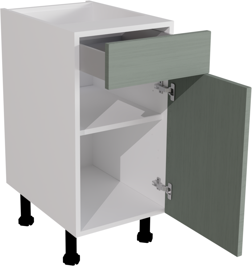 Information: 1 x 720 Base DD 400 ClicBox White 1 x Waterford Woodgrain Sage Green Pronto Door 570x396 1 x Waterford Woodgrain Sage Green Pronto Door 140x396 1 x 400W Atira Standard Drawer