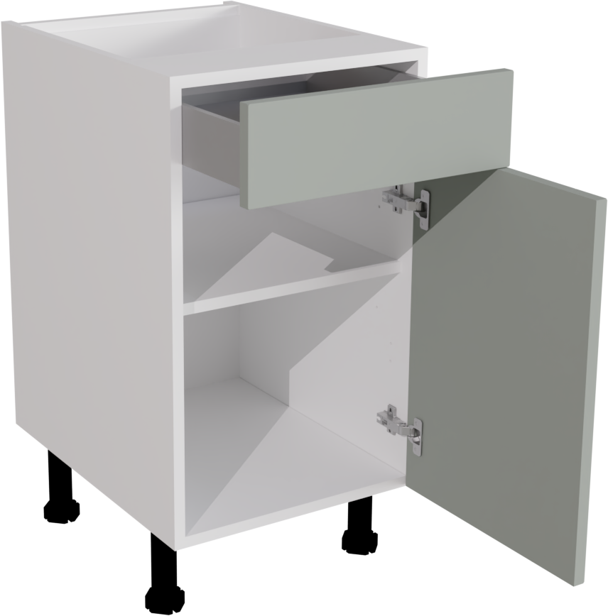 Information: 1 x 720 Base DD 450 ClicBox White 1 x Waterford Supermatt Sage Green Pronto Door 570x446 1 x Waterford Supermatt Sage Green Pronto Door 140x446 1 x 450W Atira Standard Drawer