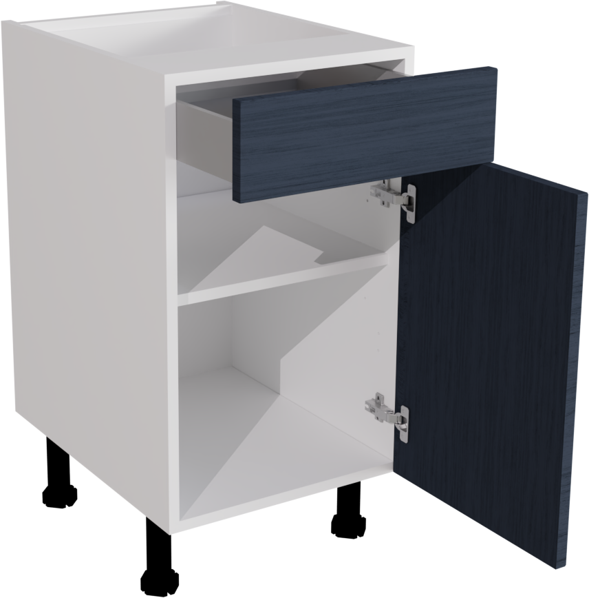 Information: 1 x 720 Base DD 450 ClicBox White 1 x Waterford Woodgrain Indigo Blue Pronto Door 570x446 1 x Waterford Woodgrain Indigo Blue Pronto Door 140x446 1 x 450W Atira Standard Drawer