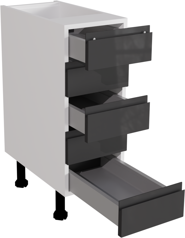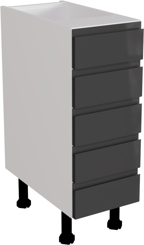 This is a 300mm handleless gloss graphite kitchen 5 drawer base unit.