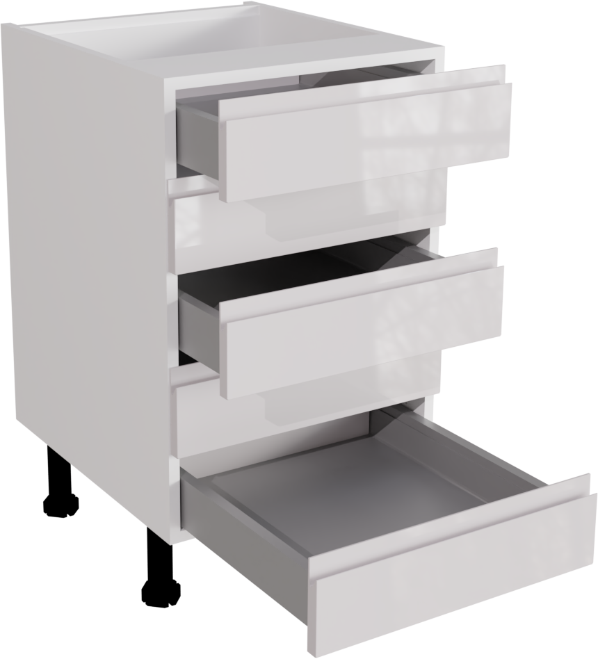 This is a 500mm handleless gloss white kitchen 5 drawer base unit. This unit includes the following parts: