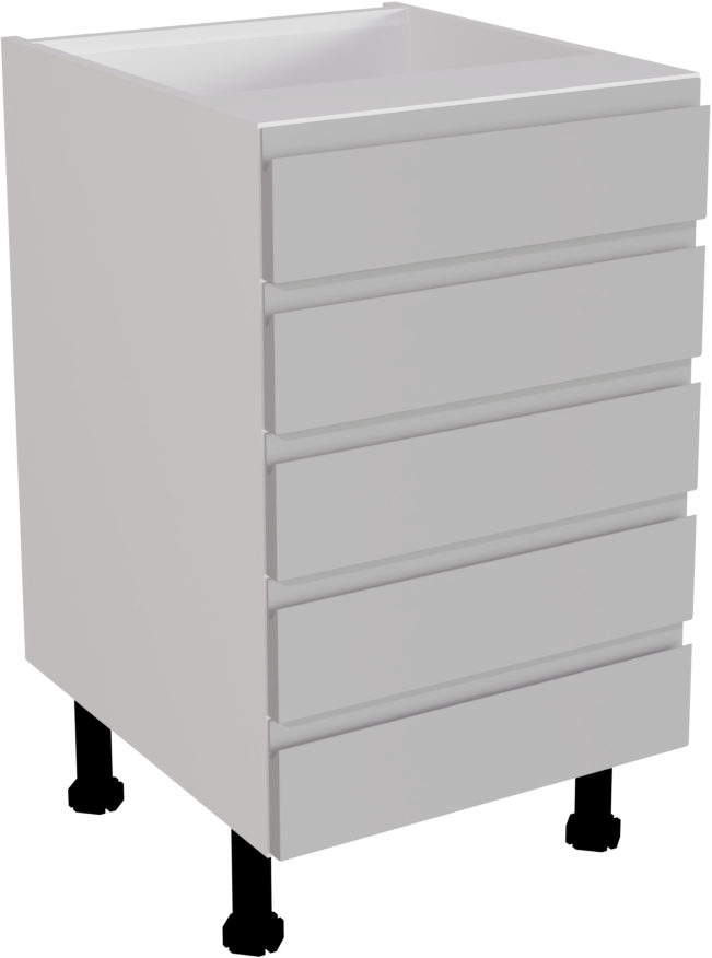 The 500mm Handleless Matt Light Grey Kitchen 5 Drawer Base Unit offers spacious and organised storage for modern culinary spaces. Crafted with precision and featuring a sleek handleless design, it maximises functionality while enhancing the contemporary aesthetic of kitchens. This listing includes the following parts: